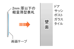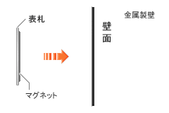 表札裏面に1mm厚のマグネットが付いていますので、壁面に表札を貼り付けます。