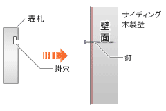 壁面に釘等を打ち込み、掛穴を掛けます。