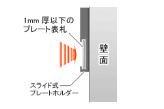 マンション等のスライド式プレートホルダーに側面から差し込みます。1mm厚以上の厚みのプレートは入らない場合がありますので、万が一差し込めない場合は無理矢理差し込まずに両面テープで貼り付けます。